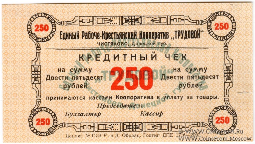 Кредитный чек без даты. Единый Рабоче-Крестьянский Кооператив "Трудовой".