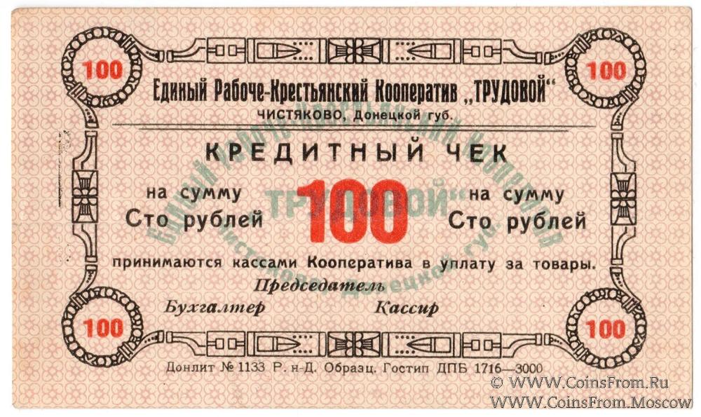 Кредитный чек без даты. Единый Рабоче-Крестьянский Кооператив "Трудовой".