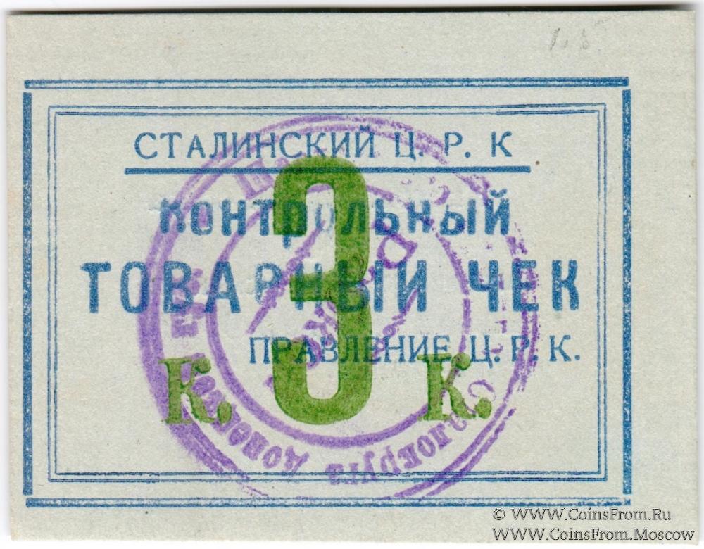 Контрольный товарный чек без даты. Печать 2 типа. Без перфорации. Цифра "3" узкая. Сталинский Ц.Р.К.