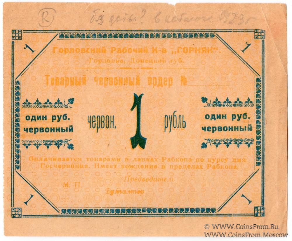 Товарный червонный ордер без даты (1923 г.). Бланк. Горловский Рабочий Кооператив "Горняк".