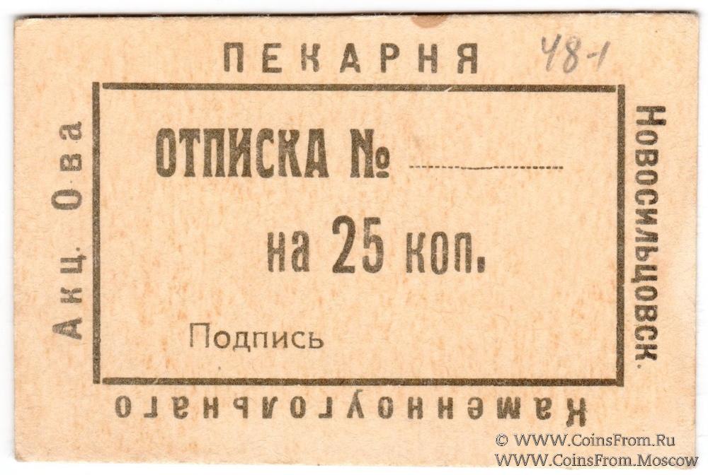 Отписка без даты (1920 г.). Бланк. Пекарня Новосильцевского каменноугольного акционерного общества.