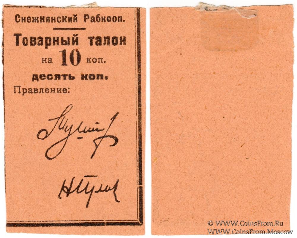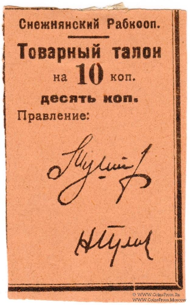 Товарный талон без даты (1925 г.). Бежевый. Снежнянский Рабкооп.