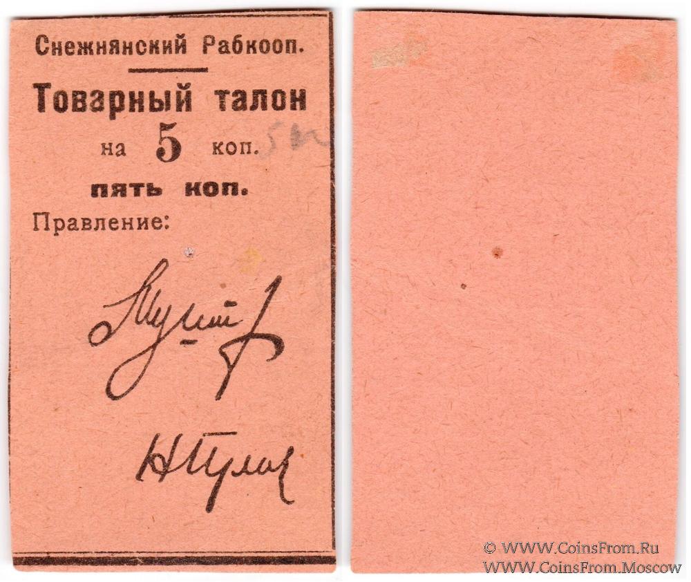 Товарный талон без даты (1925 г.). Розовый. Снежнянский Рабкооп.