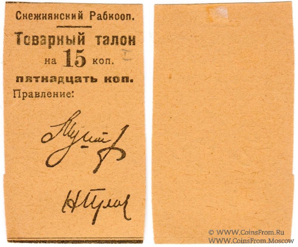 Товарный талон без даты (1925 г.). Жёлтый. Снежнянский Рабкооп.