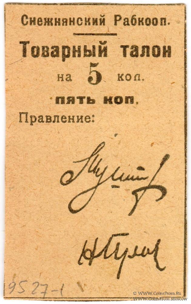 Товарный талон без даты (1925 г.). Жёлтый. Снежнянский Рабкооп.