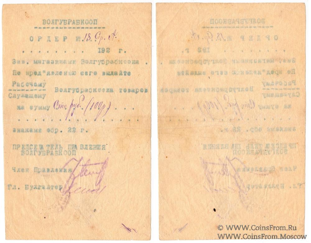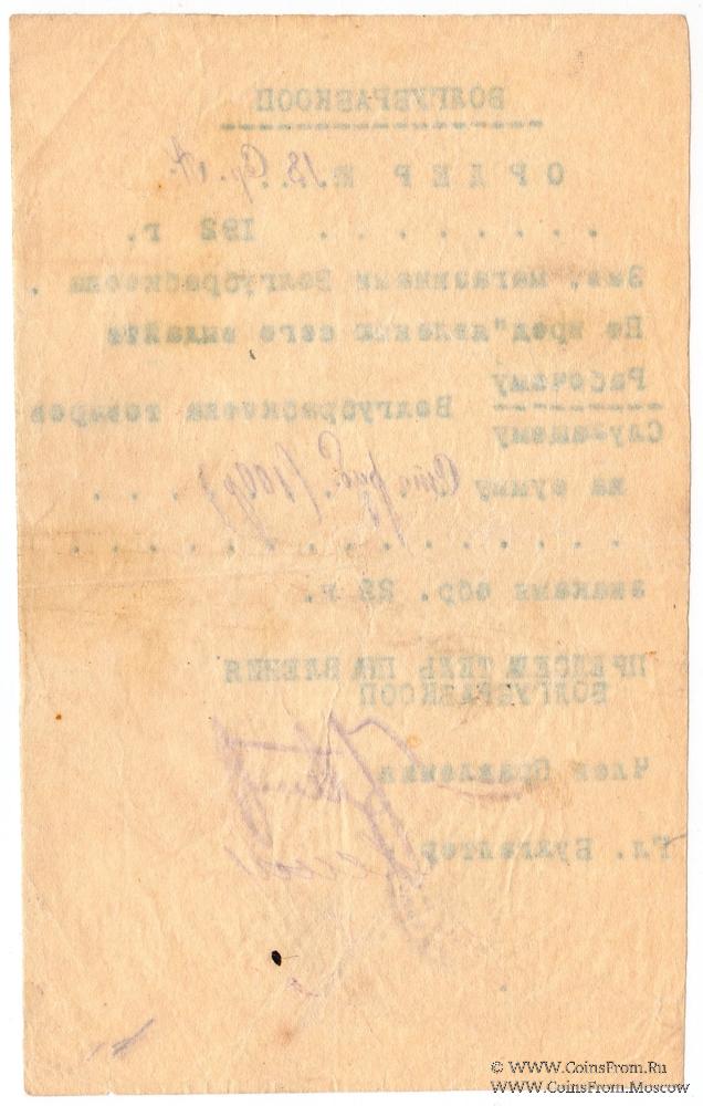 Ордер. Машинописный, голубая копирка. Со строкой для даты. Волынский губернский рабочий кооператив "Волгубрабкооп".