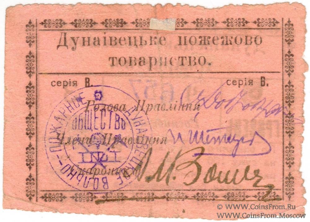 Расписка (Росписка) без даты (1919 г.). Серия В. Пожарное товарищество (Дунаiвецьке Пожежово товариство).