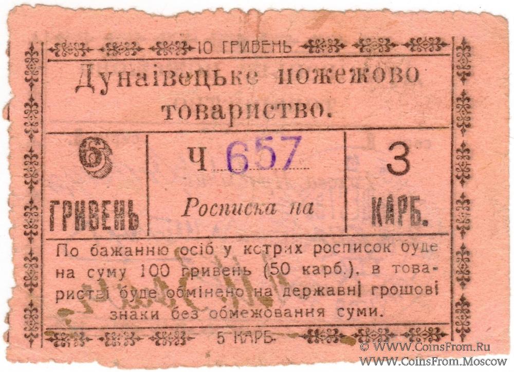 6 гривен (3 карбованца) 1919 г. (Дунаевцы)