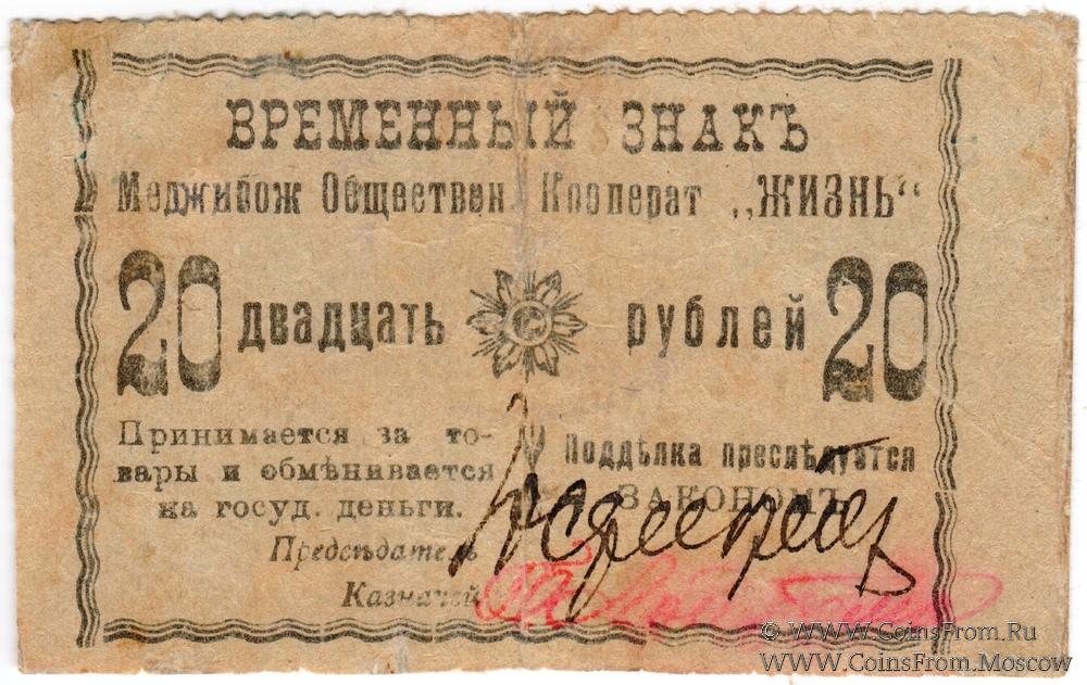 Временный знак без даты (1918 г.). Меджибожский Общественный кооператив "ЖИЗНЬ" (Межибiжський Громадський Кооператив "ЖiЗНЬ").