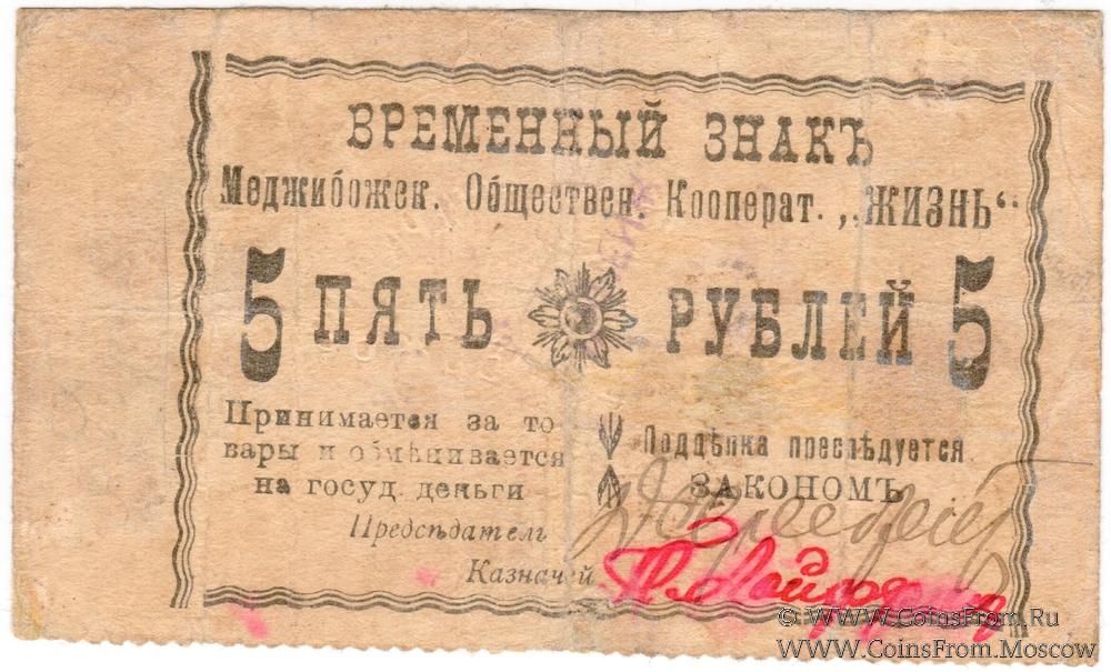 Временный знак без даты (1918 г.). Бумага чистая. Меджибожский Общественный кооператив "ЖИЗНЬ" (Межибiжський Громадський Кооператив "ЖiЗНЬ").