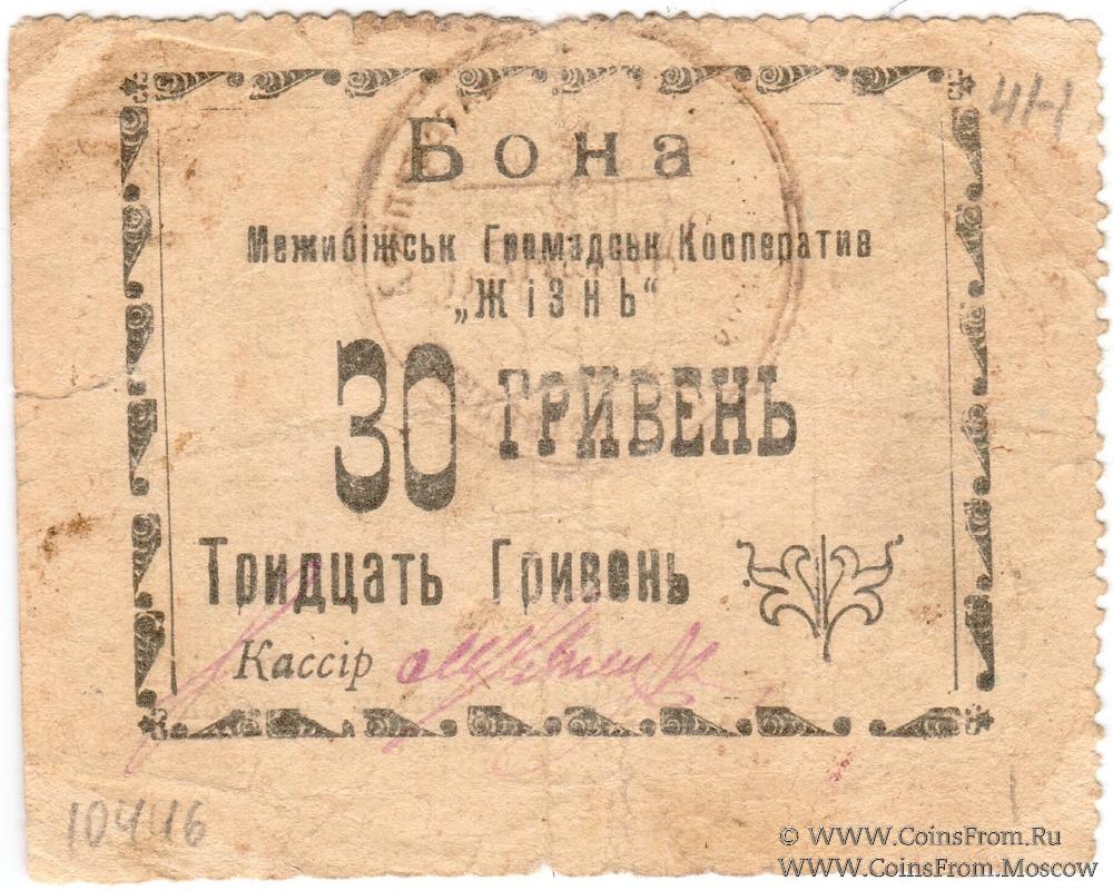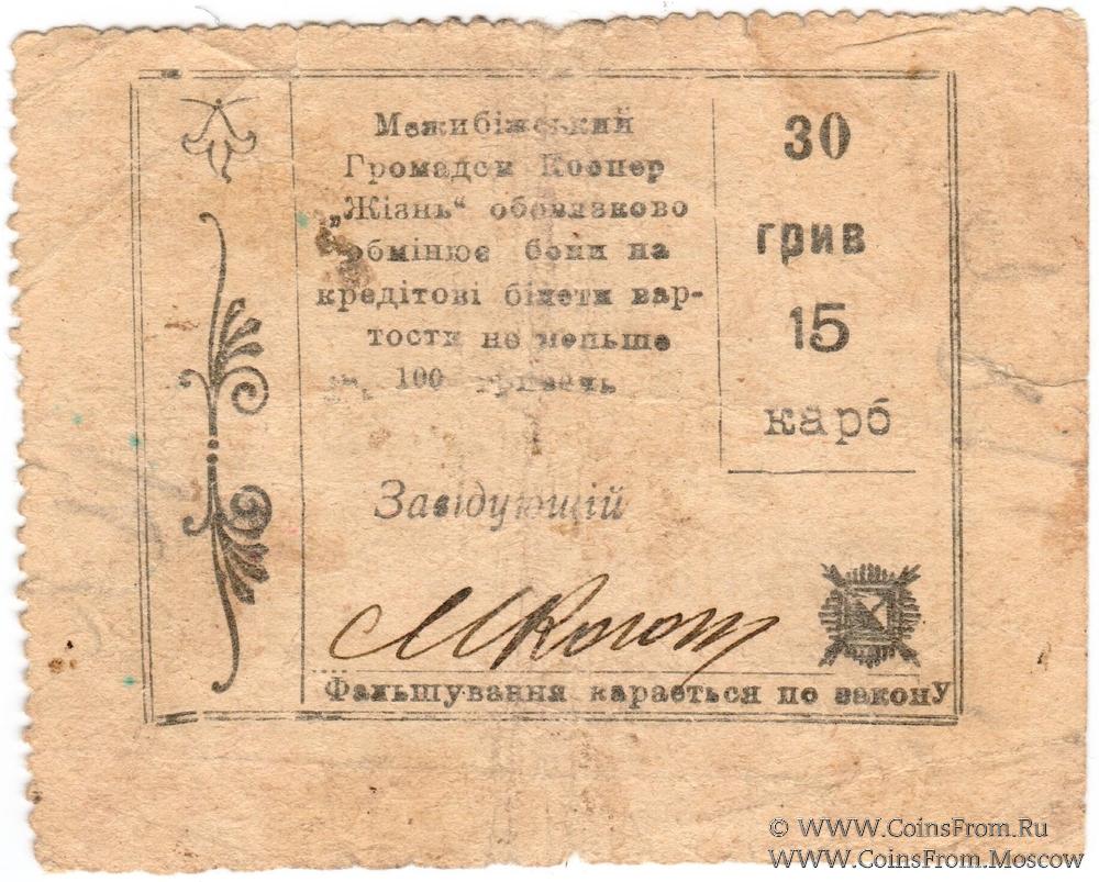 Бон без даты. Меджибожский Общественный кооператив "ЖИЗНЬ" (Межибiжський Громадський Кооператив "ЖiЗНЬ").