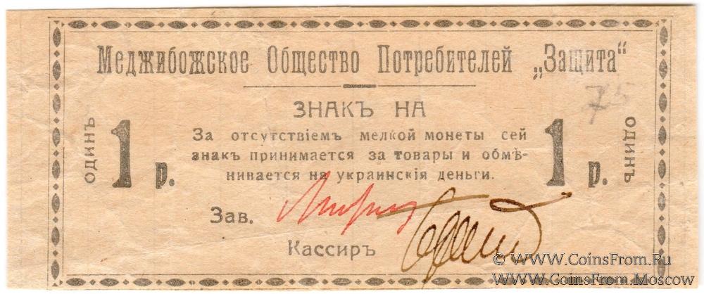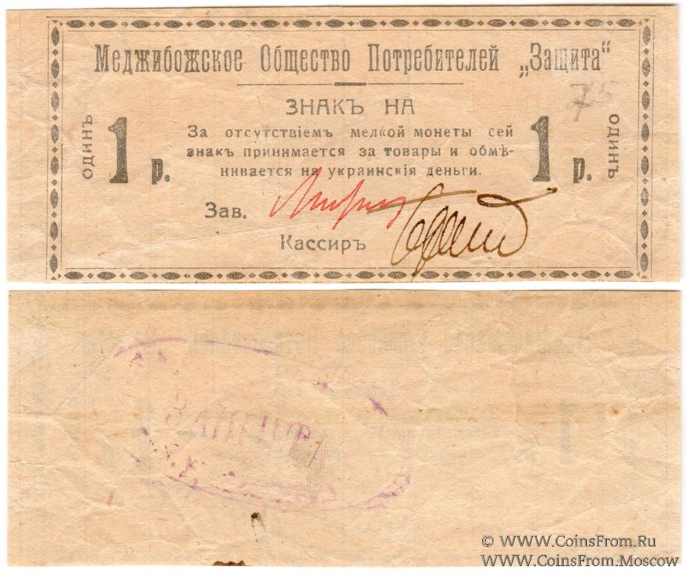 Временный знак без даты (1918 г.). Меджибожское Общество Потребителей "Защита".