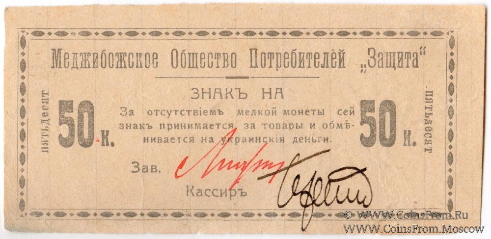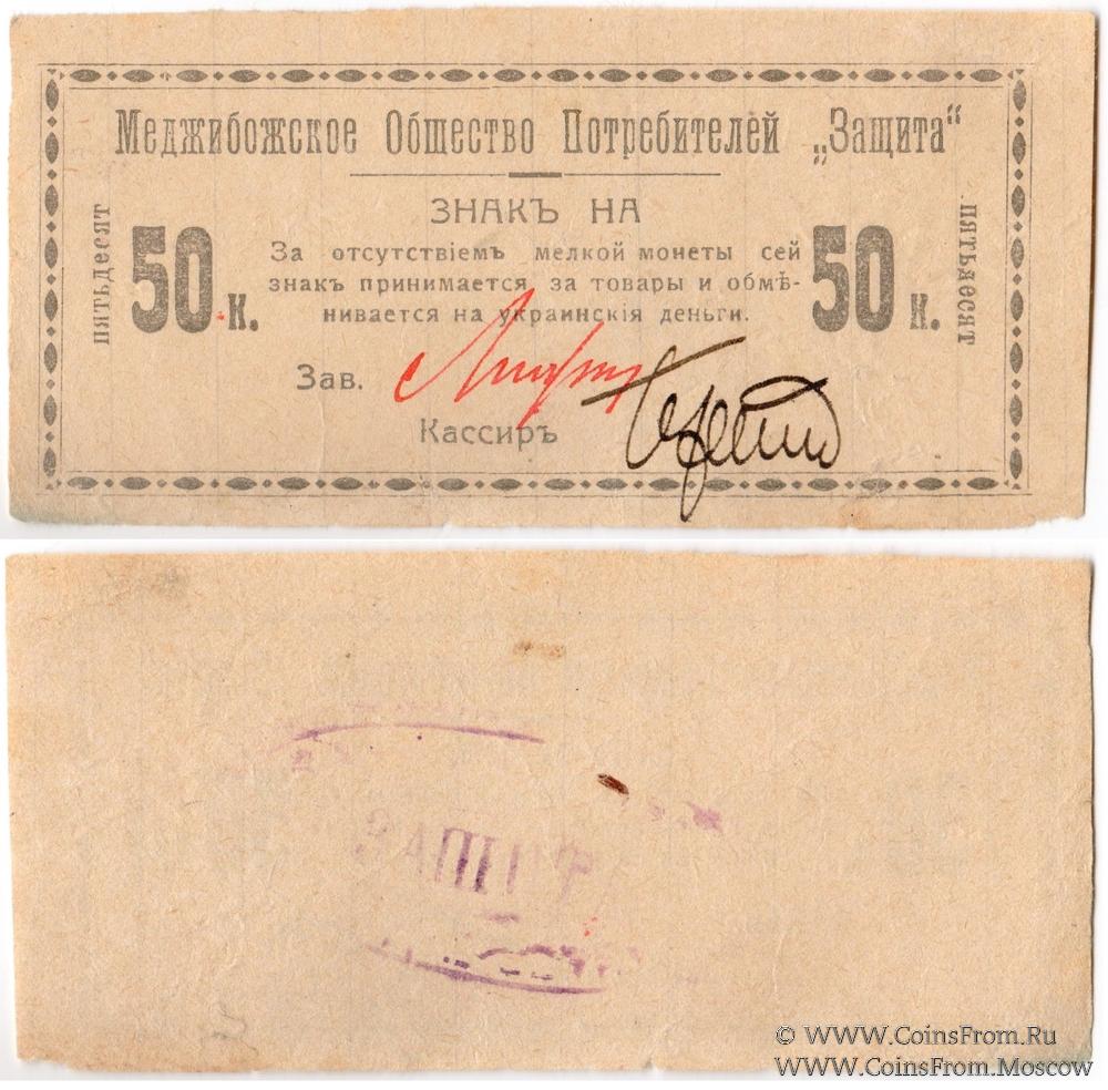 Временный знак без даты (1918 г.). Меджибожское Общество Потребителей "Защита".