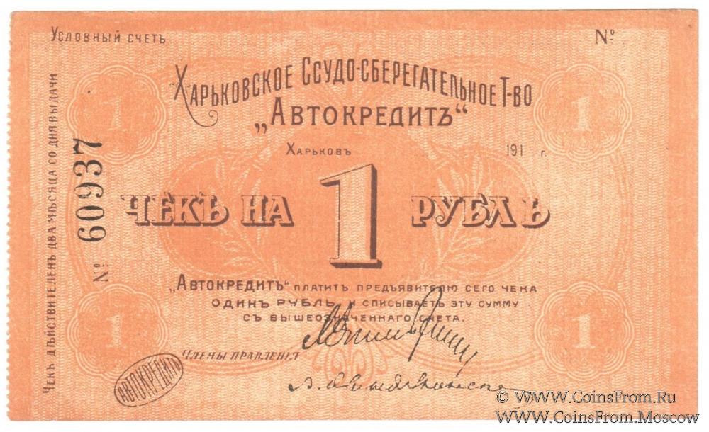 Чек 1919 г. Бланк. Номер 5-значный. Цифры высотой 6 мм, узкие (3 мм). Ссудо-сберегательное товарищество "АВТОКРЕДИТ".