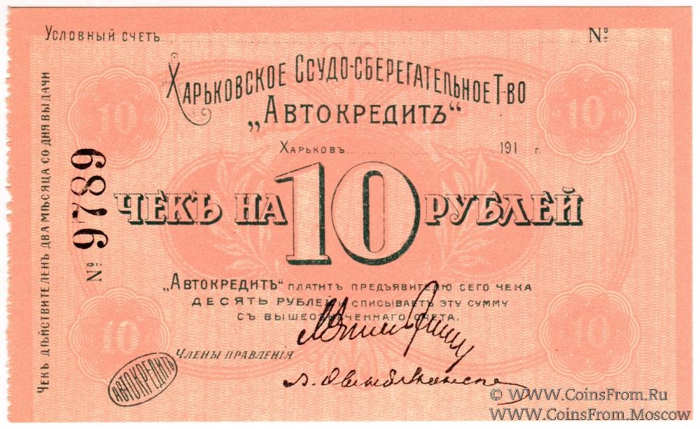 Чек 1919 г. Бланк. Номер 4-значный. Цифры высотой 7 мм. Ссудо-сберегательное товарищество "АВТОКРЕДИТ".
