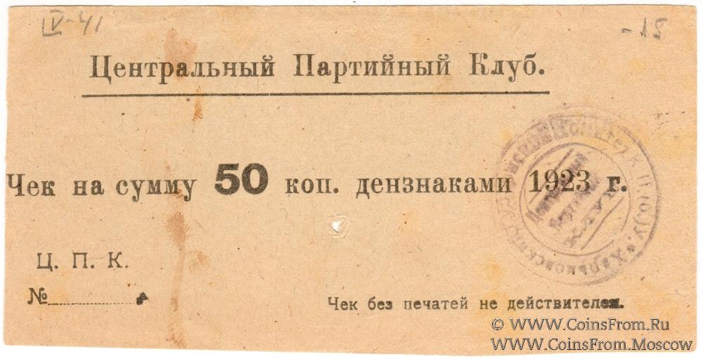 Чек. Вариант 1. Чёрная печать. Центральный Партийный Клуб.