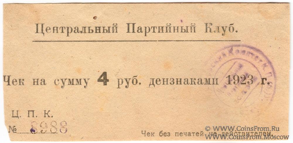 Чек. Вариант 1. С номером. Фиолетовая печать. Центральный Партийный Клуб.