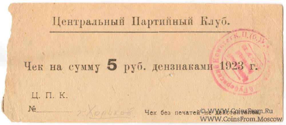 Чек. Вариант 1. Красная печать. Центральный Партийный Клуб.
