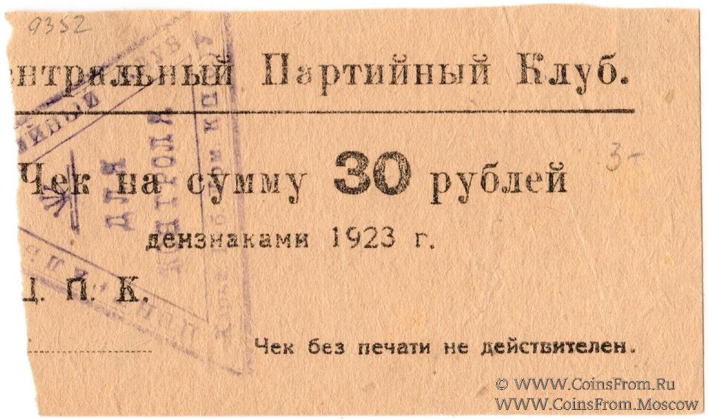 Чек. Вариант 2. Фиолетовая печать. Центральный Партийный Клуб.