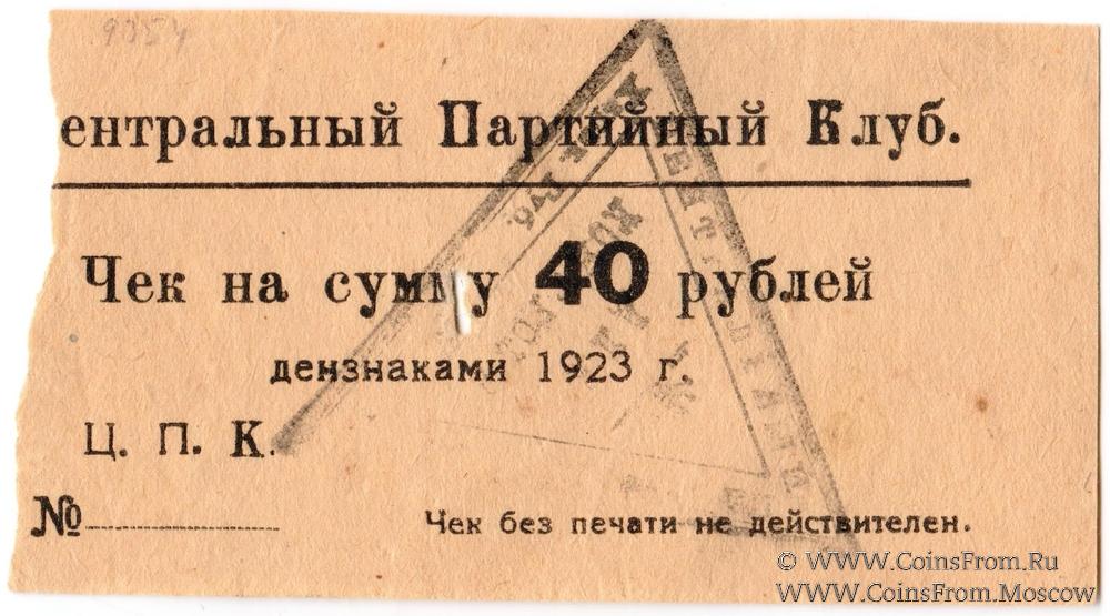 Чек. Вариант 2. Чёрная печать. Центральный Партийный Клуб.