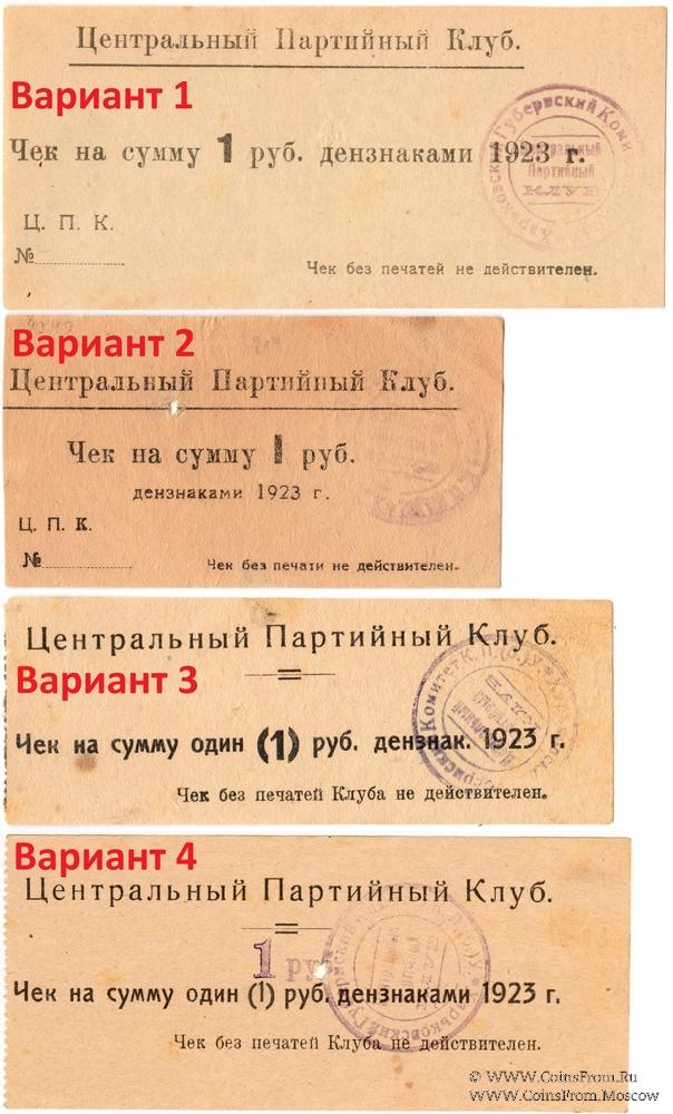 Варианты чеков Центрального Партийного Клуба (Харьков)