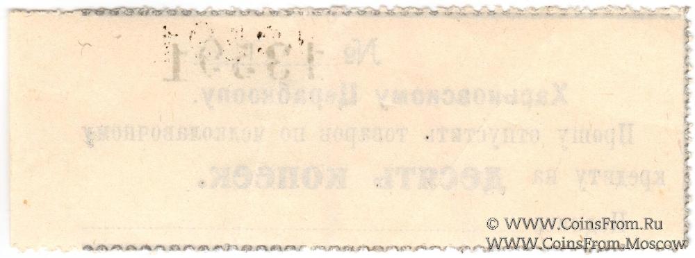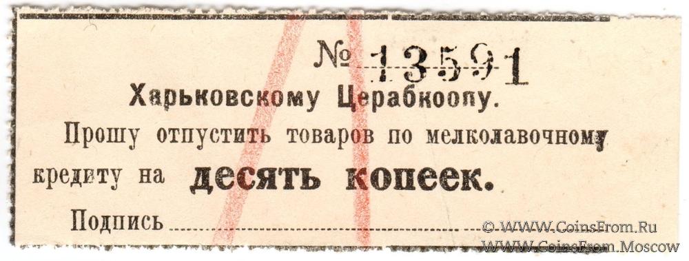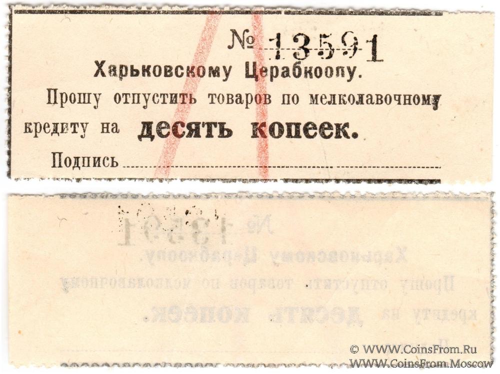 Талон по мелколавочному кредиту без даты (1924 г.). Номер 5-значный. Шрифт номинала мелкий. Харьковский Центральный Рабочий Кооператив "ЦЕРАБКООП".