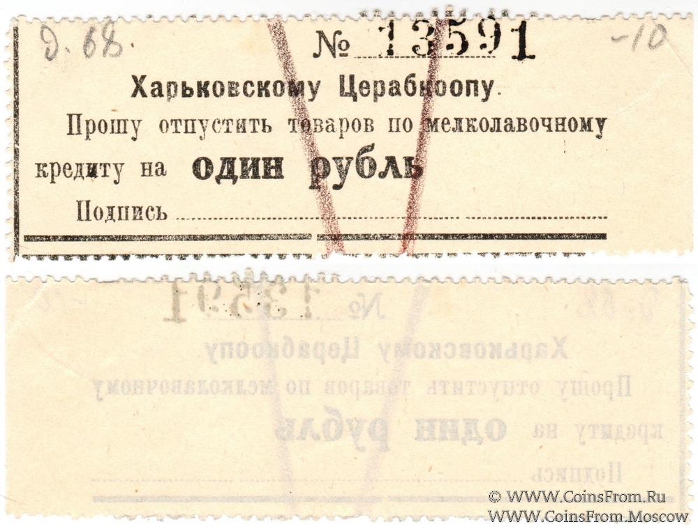 Талон по мелколавочному кредиту без даты (1924 г.). Харьковский Центральный Рабочий Кооператив "ЦЕРАБКООП".