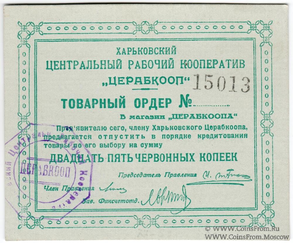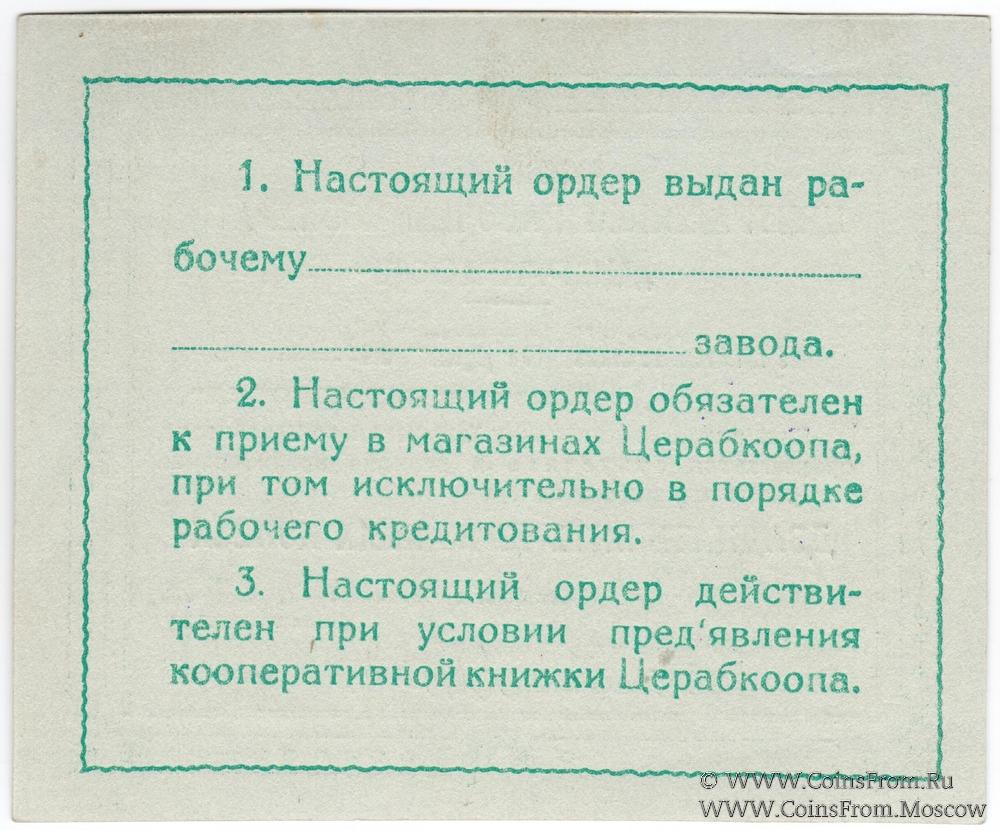 Товарный ордер без даты (1923 г.) в червонном исчислении. Элементы водяного знака. Харьковский Центральный Рабочий Кооператив "ЦЕРАБКООП".