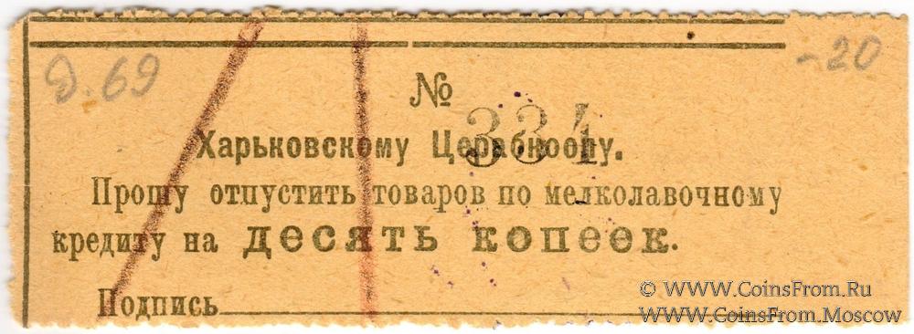Печать 8-угольная: "ЦЕРАБКООП" (по центру) / "Харьковский Центральный Рабочий Кооператив * " (по кругу).