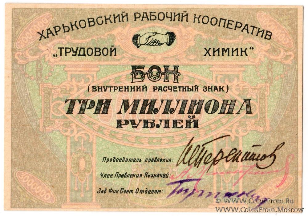Бон без даты. Харьковский Рабочий Кооператив "Трудовой Химик»".