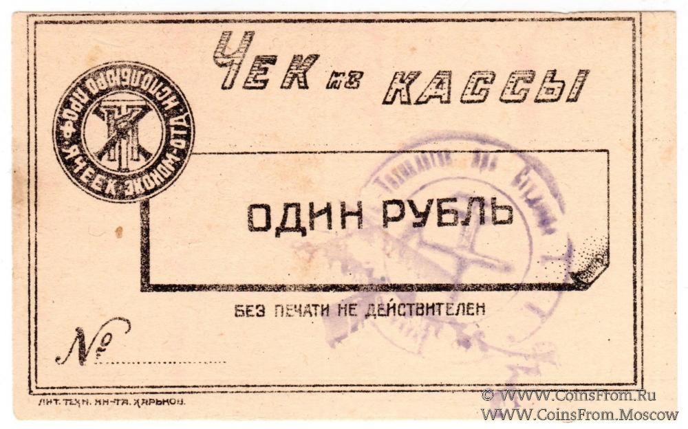 Чек из кассы без даты. Черный. Без серии. Касса Взаимопомощи Студентов-Технологов при Студенческой Кассе (СтудКассе) Харьковского Технологического Института (Х.Т.И.)