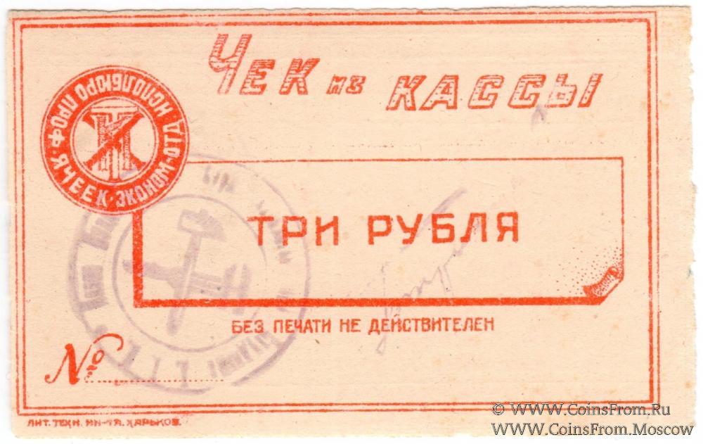 Чек из кассы без даты. Красный. Без серии. Касса Взаимопомощи Студентов-Технологов при Студенческой Кассе (СтудКассе) Харьковского Технологического Института (Х.Т.И.)