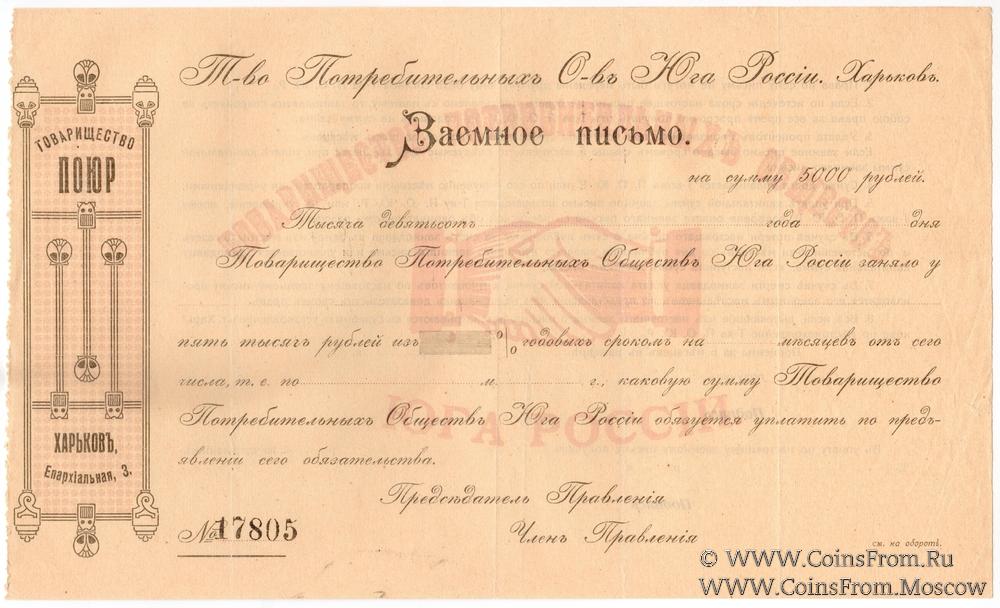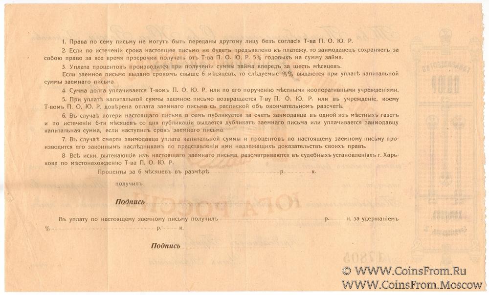 Заёмное письмо без даты. Без корешка. Товарищество Потребительских Обществ Юго-Востока России (ПОЮР).