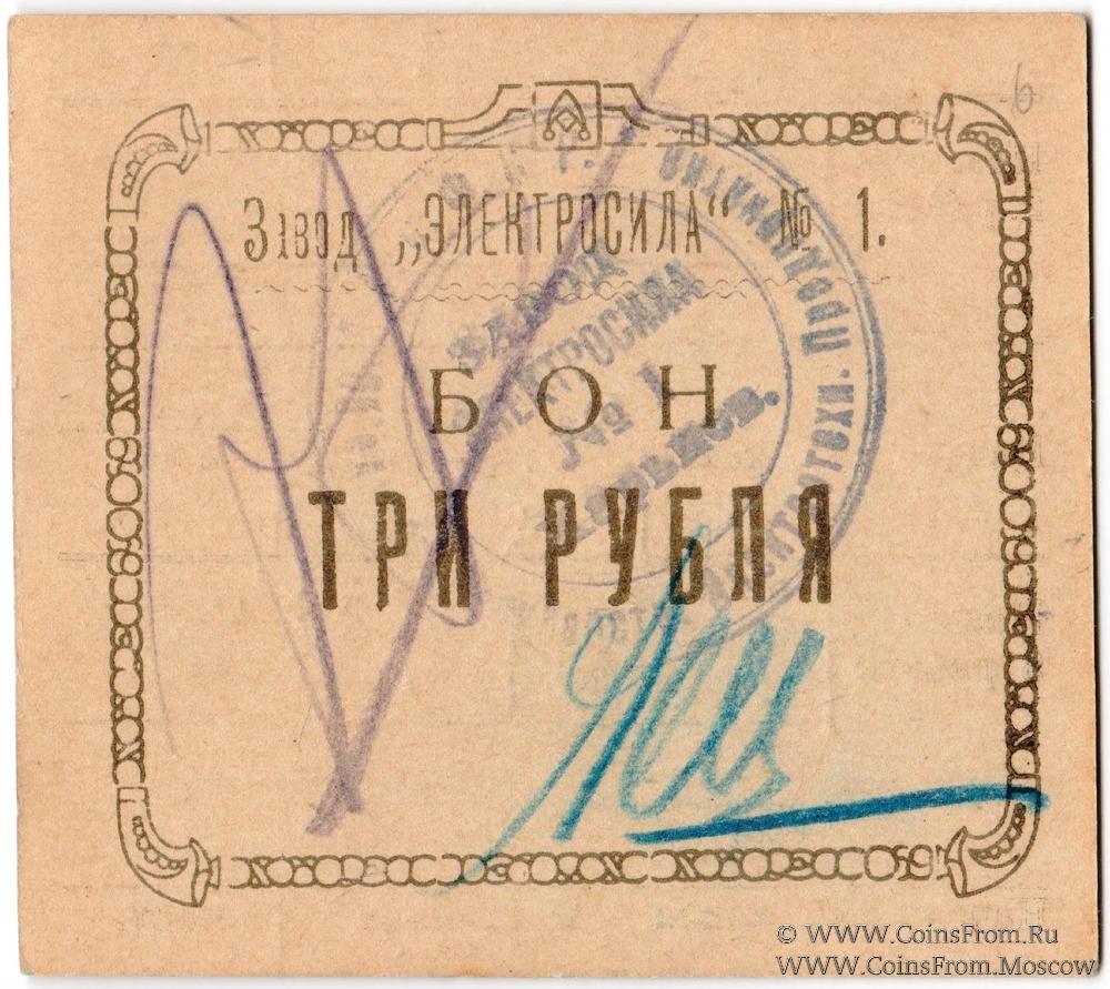 Печать круглая: "ЗАВОД ЭЛЕКТРОСИЛА № 1 Харьков" (по центру, в 4 строки) / "Об`единен. Государств. Электрохн. Предприятий *Р.С.Ф.С.Р.* " (по кругу).