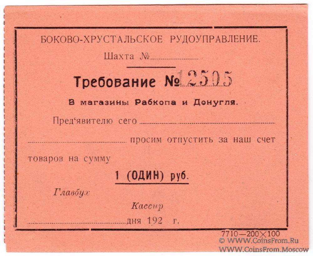 Требование 1920-х гг. Бланк. Боково-Хрустальское Рудоуправление.