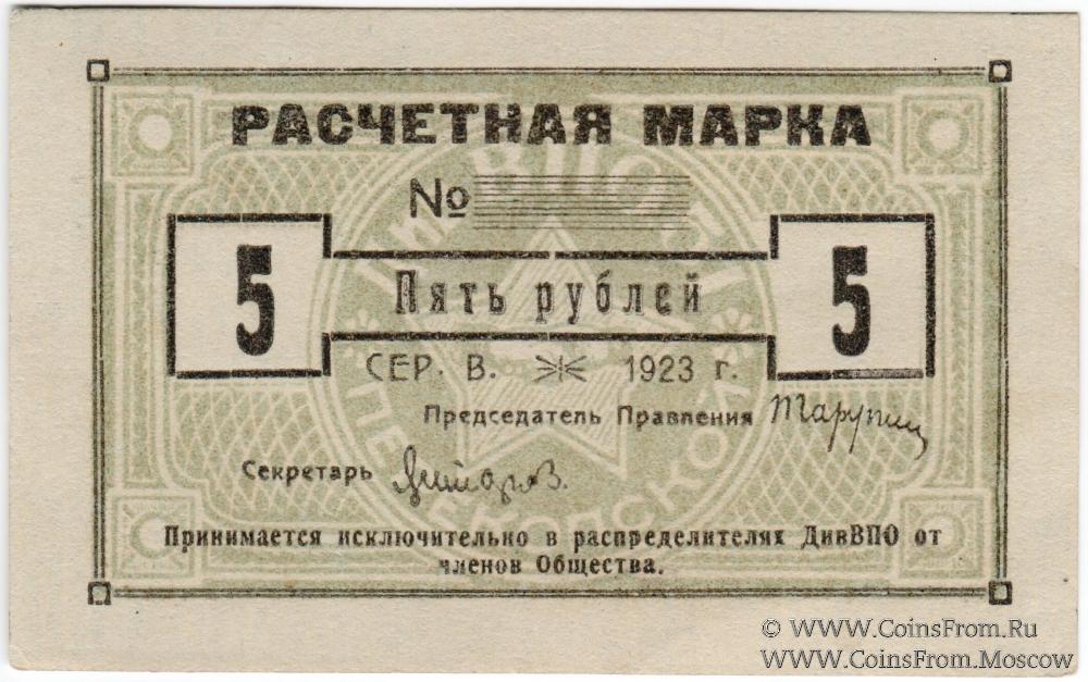 Расчетная марка 1923 г. Серия В. Перекопская Дивизия ВПО 51 (ДивВПО).