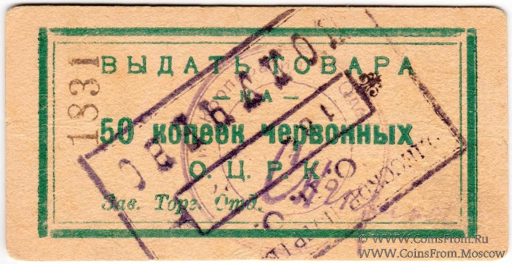 В червонных рублях без даты (1923 г.) на тонком картоне. Прямоугольный штамп "ПОЛУЧЕНО" на аверсе. Одесский Центральный Рабочий Кооператив (О.Ц.Р.К.).