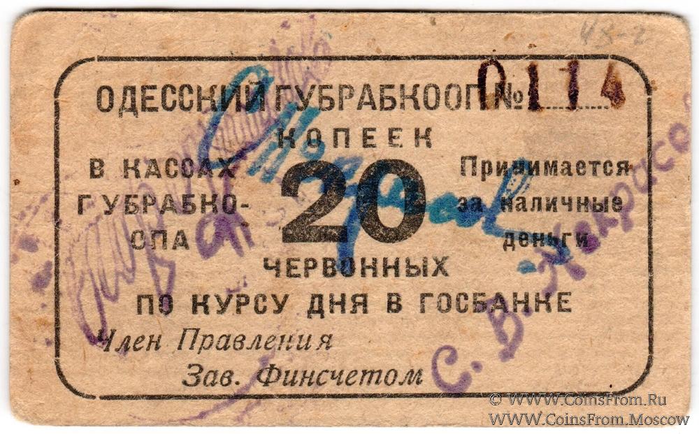 Печать круглая: "ПРАВЛЕНИЕ" (по центру) / "Одесский Губернск. Союз Рабочей и Городской Кооперации" (по кругу).