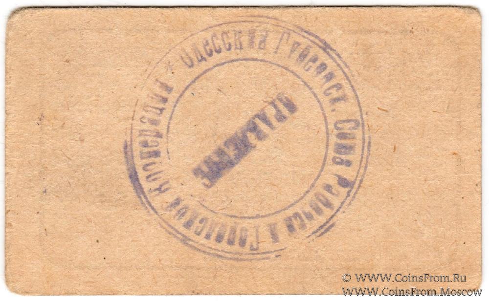 Печать круглая: "ПРАВЛЕНИЕ" (по центру) / "Одесский Губернск. Союз Рабочей и Городской Кооперации" (по кругу).
