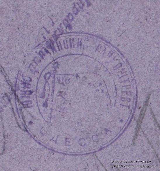 Печать круглая: Герб кожтреста (по центру) / "Южно украинский рабкожтрест * Одесса * " (по кругу)