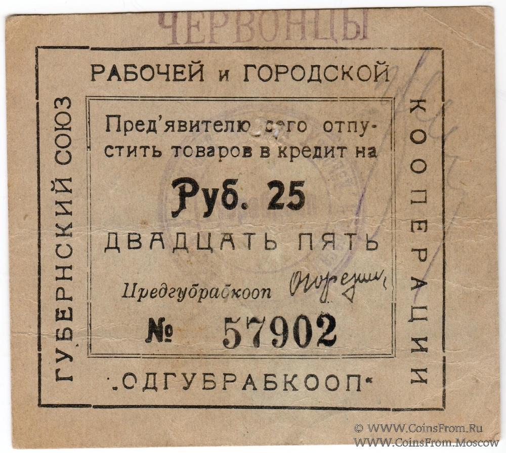 Печать "Губрабкооп" и надпечатка "ЧЕРВОНЦЫ" на аверсе.