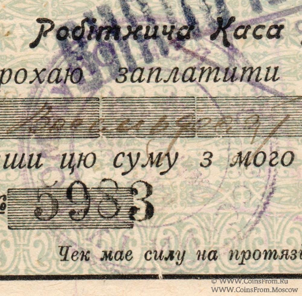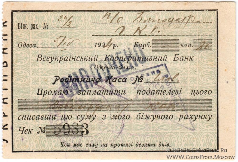 Треугольный штамп (Главная Рабочая КАССА УКРАИНБАНКА) в Одессе): "Головна / Робiтнича" (по сторонам) / "КАСА / УКРАIНБАНКУ / в Одесi" (по центру в три строки)