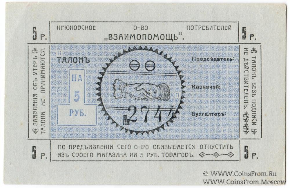 Талон без даты. Бланк. Крюковское Общество Потребителей "ВЗАИМОПОМОЩЬ".