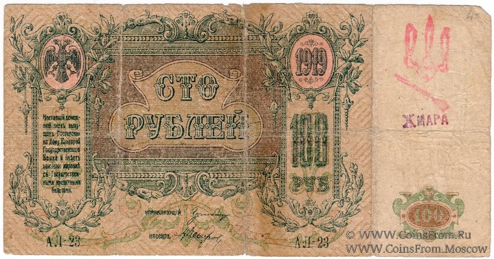100 рублей 1918 г. (Чигирин). НАДПЕЧАТКА (Атаман Хмара).