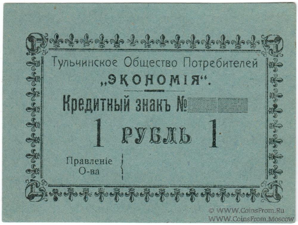 Кредитный знак без даты. Бланк. Тульчинское Общество Потребителей "ЭКОНОМИЯ".
