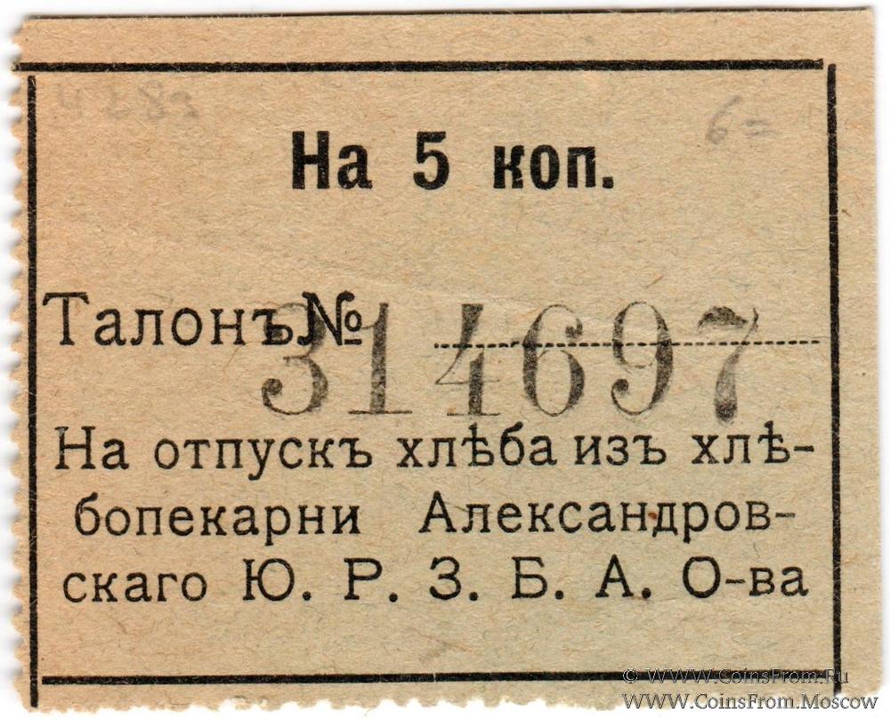 Талон без даты. Перфорация с 2-х сторон. Хлебопекарня Александровского Ю.Р.З.Б.А.О-ва.