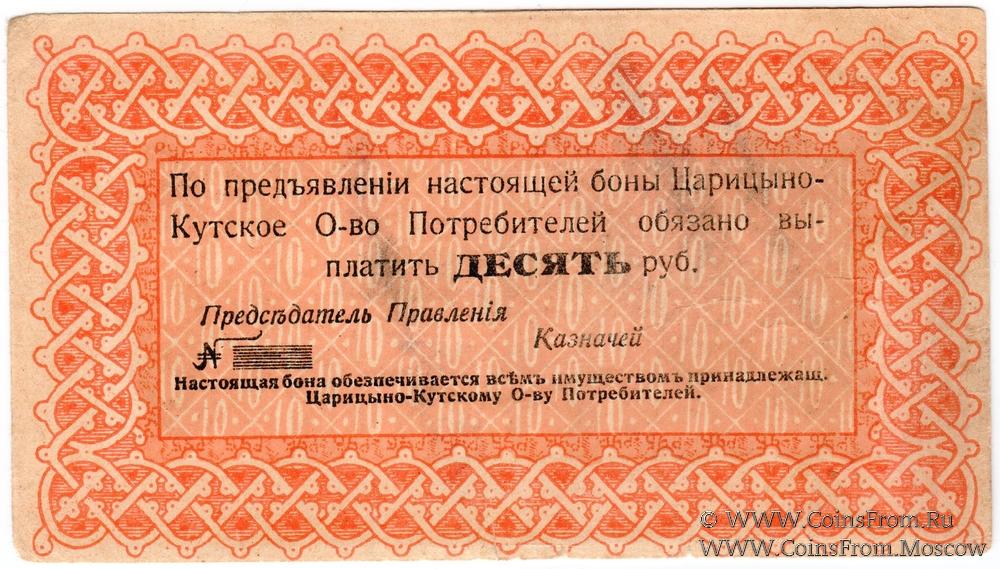 Бона. Бланк. Царицыно-Кутское Общество Потребителей (Ц.К.П.О.).