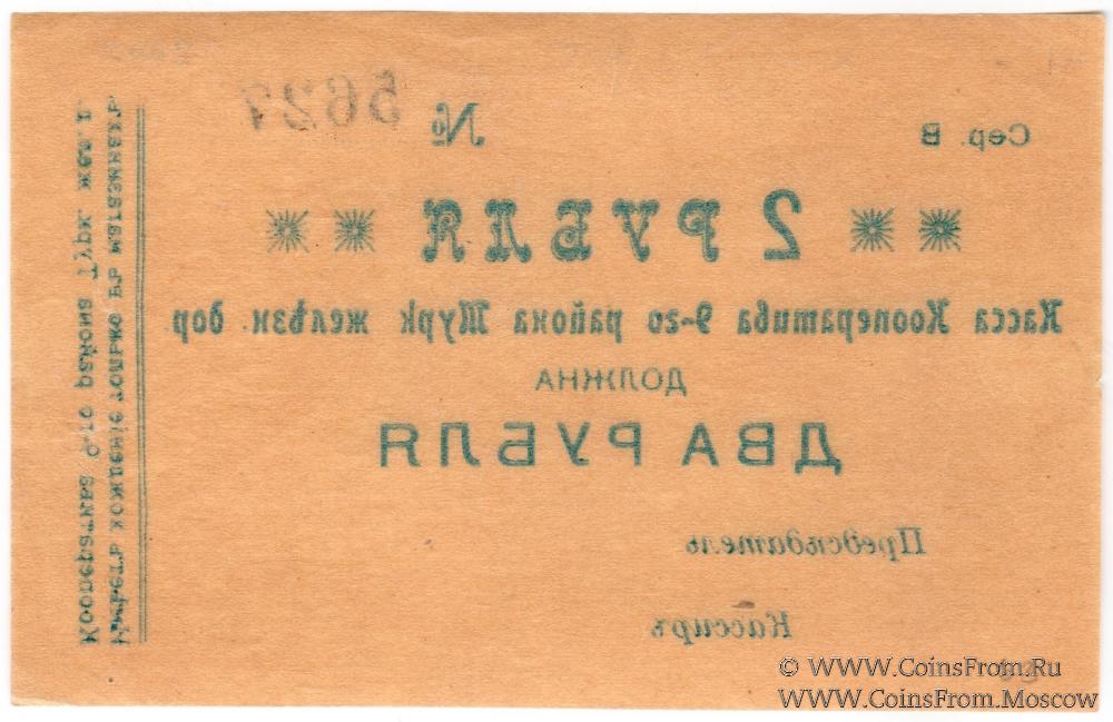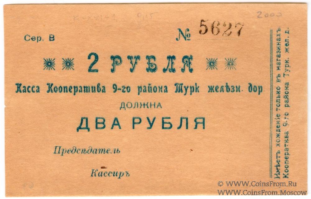 Серия В. Касса Кооператива 9-го района Туркестанской железной дороги.