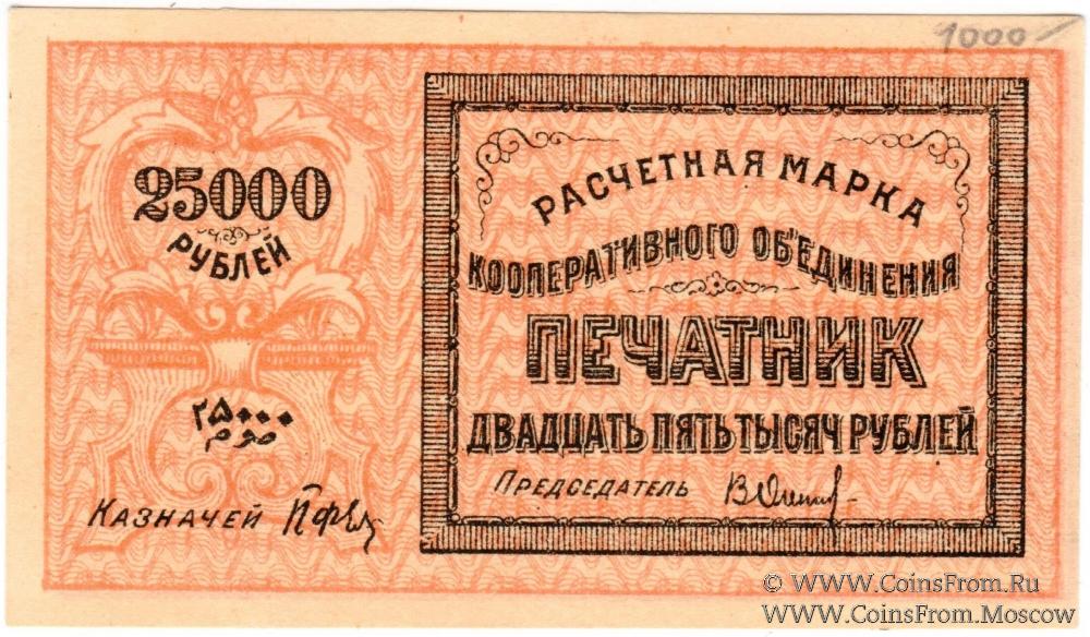 Расчетная марка без даты (1922 г.). Бланк. Кооперативное объединение "Печатник".