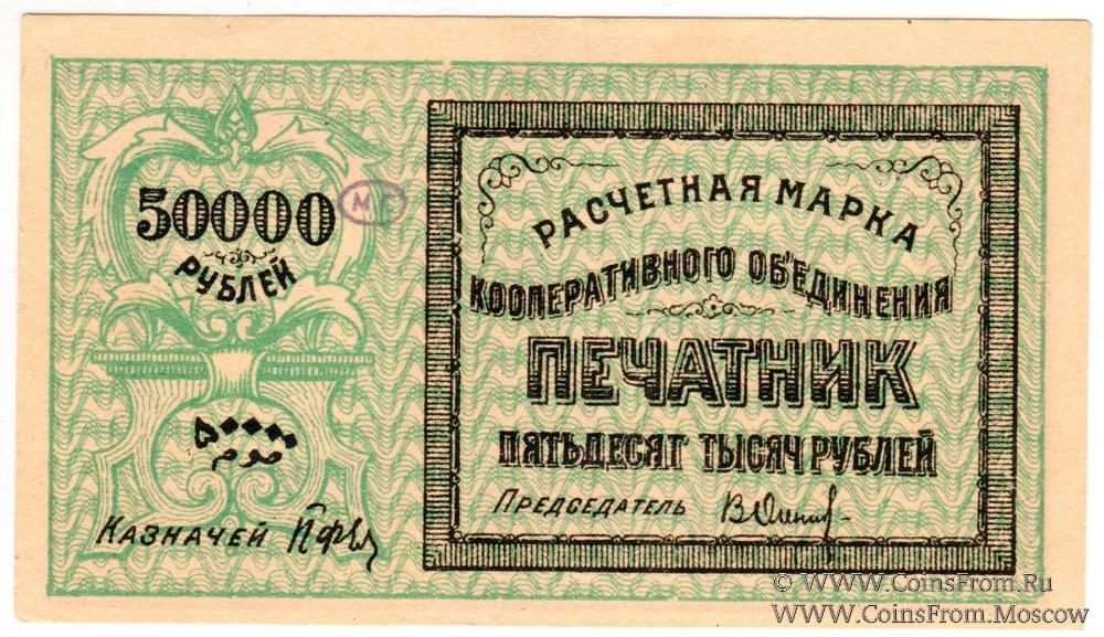 Расчетная марка без даты (1922 г.). Бланк. Кооперативное объединение "Печатник".